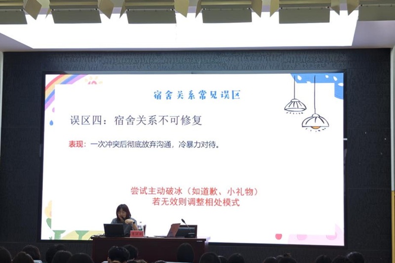 接着针对最受关注的宿舍关系问题,她梳理出“陌路人”“表面和谐”“家人朋友”等五种关系类型,并解析了从“快乐期”到“眷恋期”的四阶段发展规律。其中特别纠正了“舍友必须成好友”“冲突应回避”等认知误区,强调尊重边界与理性沟通的重要性。