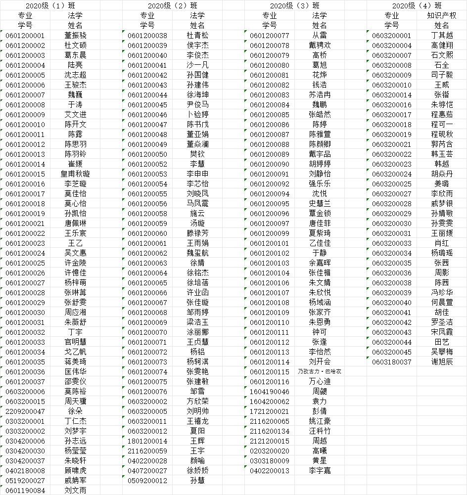 法学院2020级(2024届)校友名录