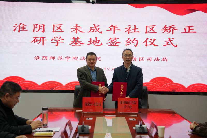 为深化校地协同育人,推动法学理论与法治实践深度融合,切实发挥高校服务地方社会治理职能,12月8日,法学院院长郭兴利一行赴淮安市淮阴区司法局,参加“青春领航 向阳而行”未成年社区矫正研学基地合作签约仪式。淮阴区司法局党组书记、局长刘刚,淮阴区司法局党组成员、副局长李林,淮阴区社区矫正管理局全体工作人员、法学院指导老师等参加了活动。