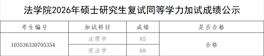法学院2026年硕士研究生复试同等学力加试成绩公示