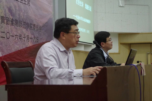 法政学院10月19日电(记者 李和森 李霞 刘洋 鲍圆梦)追溯红色长征记忆,传承红军革命精神。10月18日晚,淮阴师范校团委在交通路校区逸夫报告厅举办了“‘壮美史诗瑰丽长征’—纪念红军长征胜利80周年”报告会,会议邀请校工办主席金钊担任主讲,由校团委书记闫超栋主持,近300名优秀学生代表前来认真听讲,会议现场座无虚席。