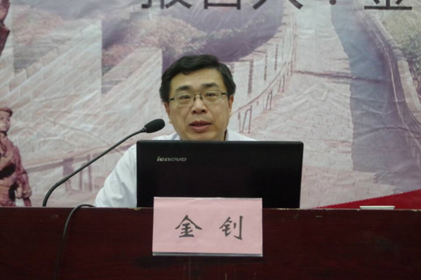 图为金钊主席在为同学们讲述长征精神 记者 刘洋 鲍圆梦 摄